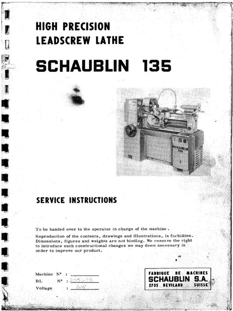 Read Schaublin 135 High Precision Lathe Service Instructions pdf Reader ManyBooks